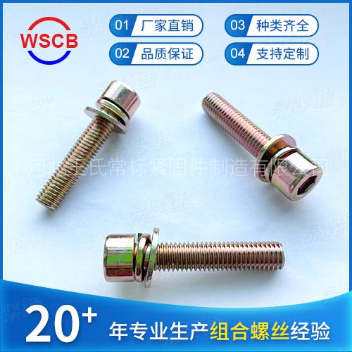 當前位置:首頁 >> 產品列表 >> 8.8級內六角三組合螺絲 GB70.1平彈墊組合平彈墊圓柱頭內六角螺絲